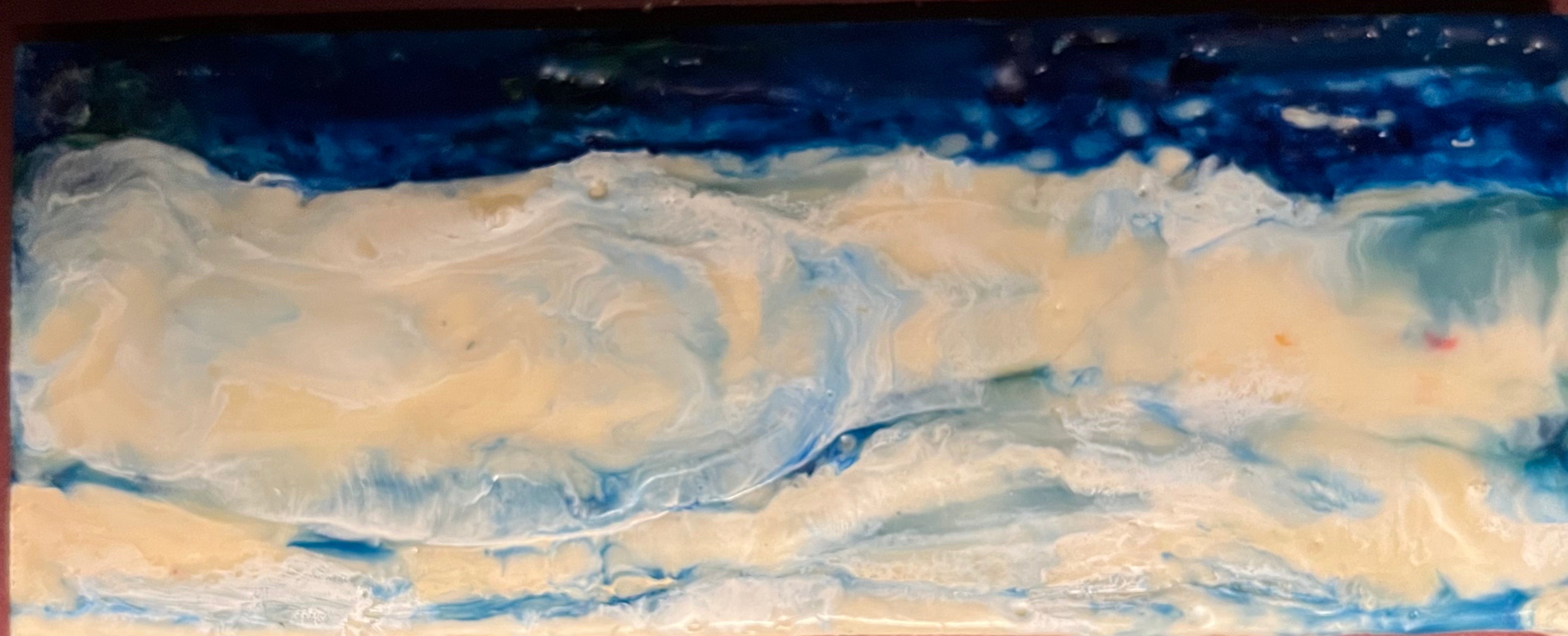 Tall/small work, original handmade encaustic artwork created with encaustic paint and mixed media on wood, created by Grelaine (Grelaine_Art on Instagram)