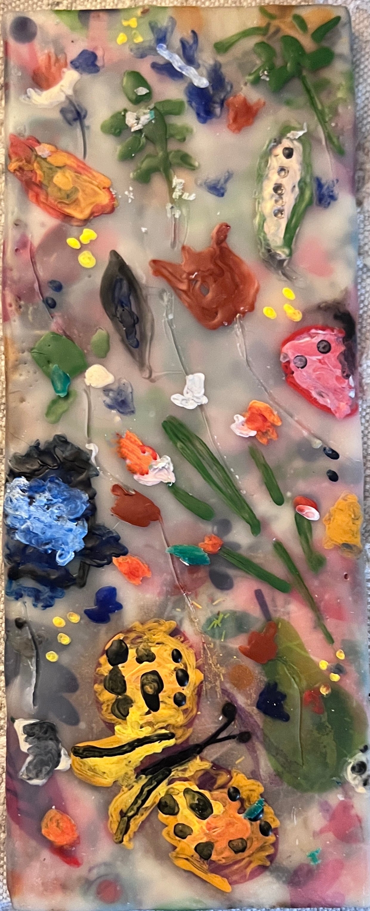 Tall/small work original handmade encaustic artwork created with encaustic paint and mixed media on wood, created by Grelaine (Grelaine_Art on Instagram)
