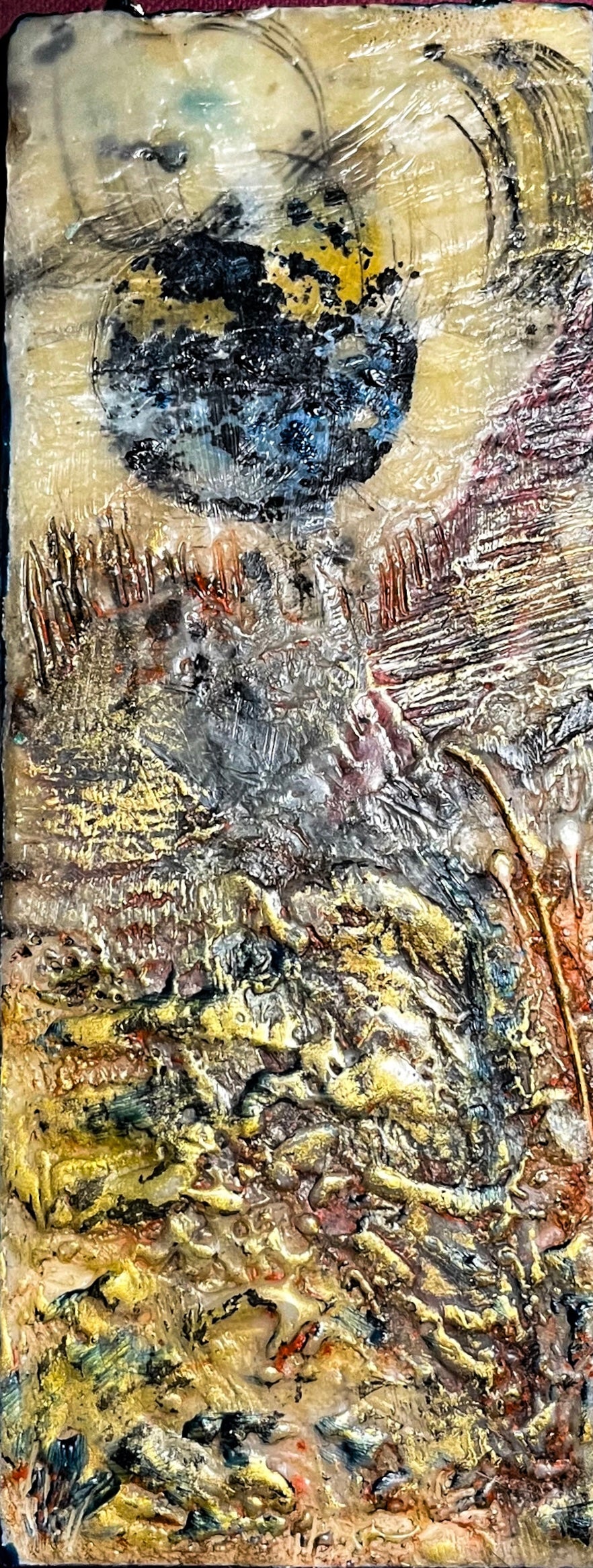 Tall/small work, original handmade encaustic artwork created with encaustic paint and mixed media on wood, created by Grelaine (Grelaine_Art on Instagram)