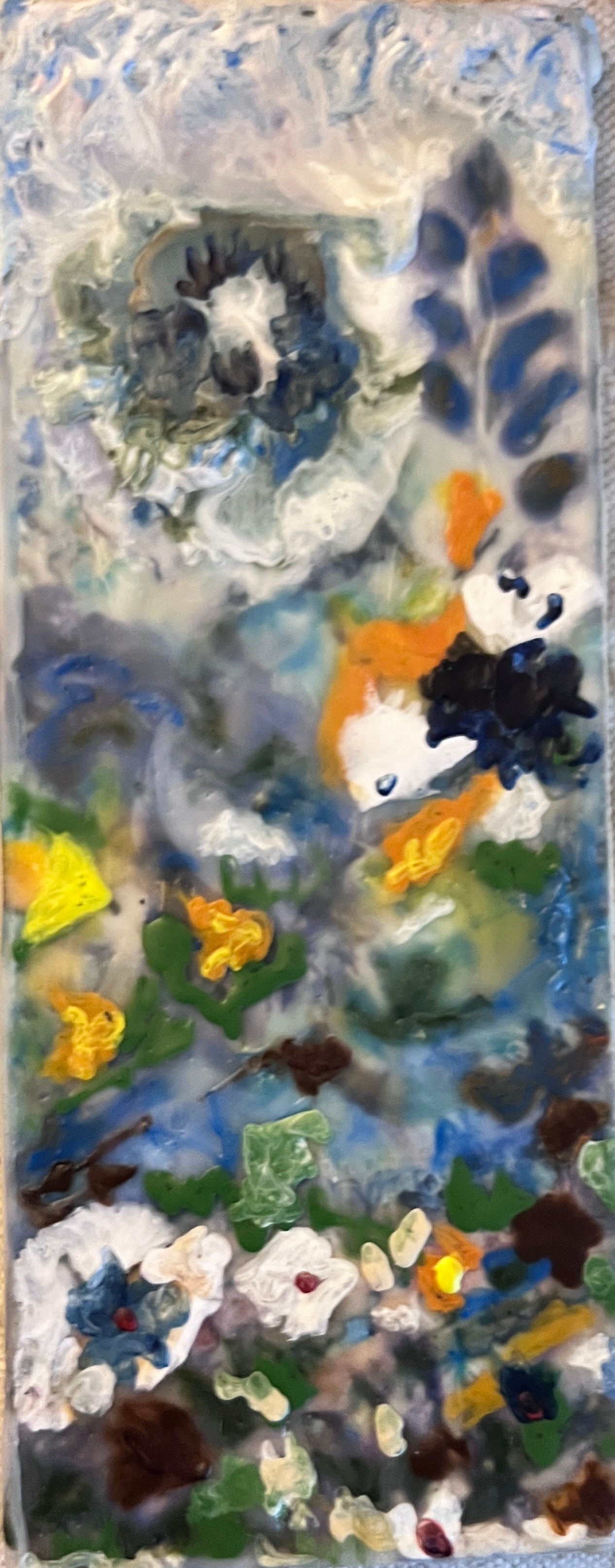 Tall/small work original handmade encaustic artwork created with encaustic paint and mixed media on wood, created by Grelaine (Grelaine_Art on Instagram)